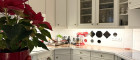 Die offene, weiße Küche im Landhausstil fügt sich harmonisch in das Wohnkonzept ein. Der angrenzende Wohnbereich besticht durch seine Gemütlichkeit und wird durch einen Schwedenofen zu einem besonders einladenden Ort – ideal für entspannte Abende. Der anschließende Wintergarten dient als lichtdurchflutetes Esszimmer und schafft eine wunderbare Verbindung zwischen Innen- und Außenraum.