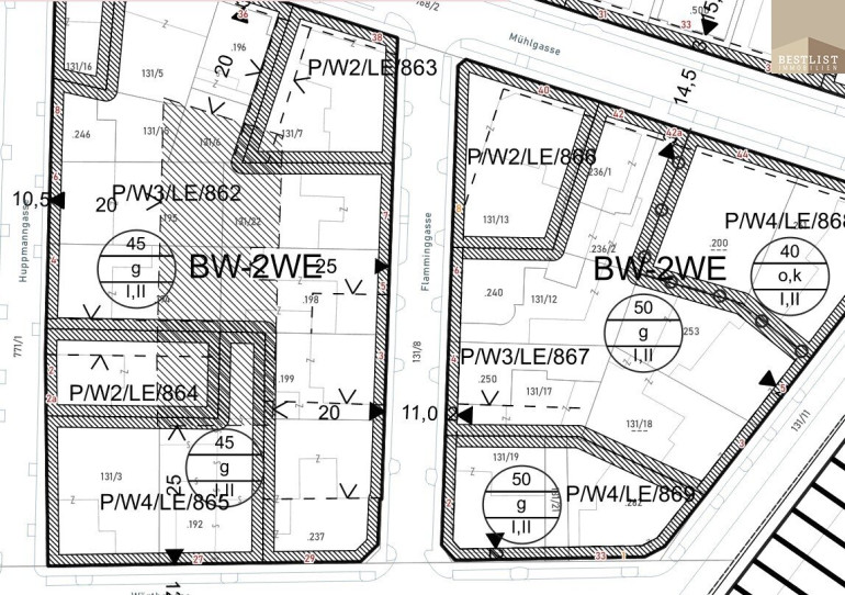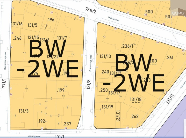 Flächenaufteilung und ungefähres Errichtungsjahr