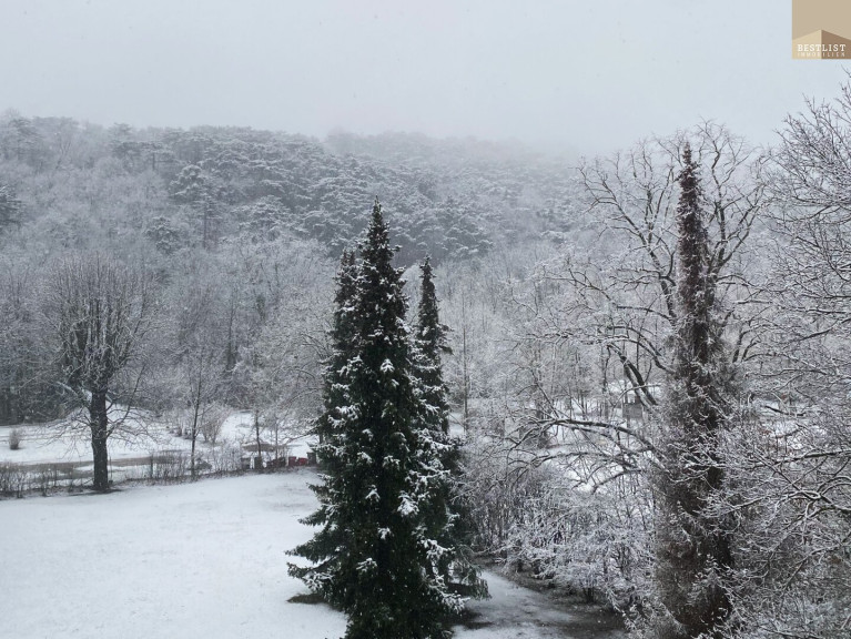 Über ein Vorzimmer mit praktischem Abstellraum bzw. Garderobenbereich sowie einer Gästetoilette gelangt man in das ca. 23,57 m² große Wohnzimmer mit separater Küche. Von hier aus führen sowohl der Aufgang in das obere Geschoss als auch der Ausgang auf die südwestlich ausgerichtete Loggia mit ca. 5,66 m². Diese bietet einen herrlichen Blick auf die umliegenden Bäume und das Helenental. Die absolute Ruhelage ist hier garantiert.