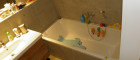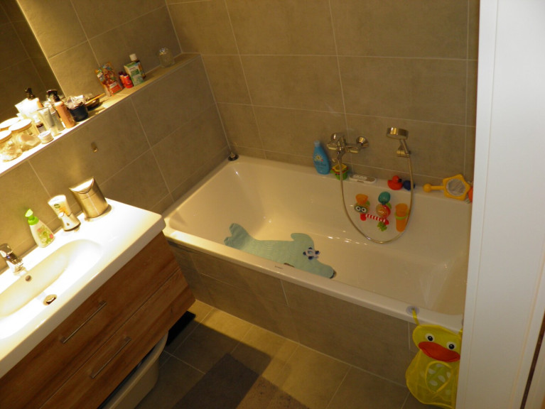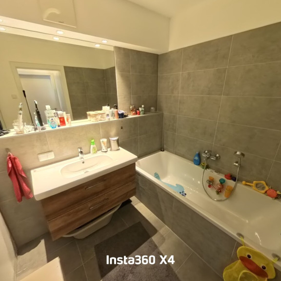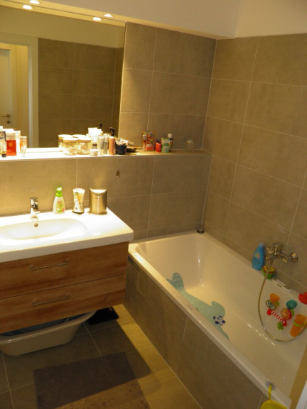 - 2 (!) Bäder - eines mit Dusche und Waschbecken, eines mit Wanne und Waschbecken - wobei die Möglichkeit bestünde diese zu EINEM Badezimmer zu vereinen (=großes Bad) Eine entnehmbar Trennwand sieht dies vor.