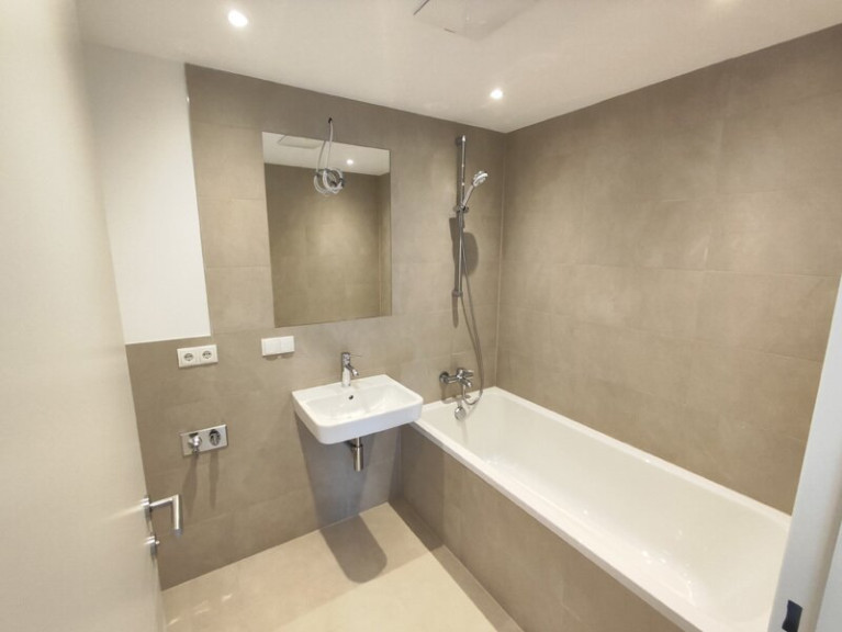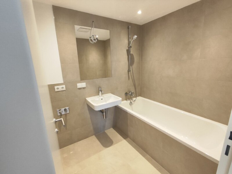 Die Wohnung ist mit hochwertigen Materialien ausgestattet, die Komfort vermitteln. Der schöne Parkettboden und die stilvollen Fliesen verleihen den Räumen eine warme Atmosphäre, während die Fußbodenheizung für wohlige Wärme sorgt. Die großzügige Wohnküche mit offener Gestaltung lädt dazu ein, kulinarische Köstlichkeiten zu kreieren und gesellige Abende zu verbringen. Das Schlafzimmer mit angrenzendem Bad ist über das Wohnzimmer zu gegehen. Das Badezimmer, das mit einer Badewanne ausgestattet ist, bietet einen perfekten Rückzugsort für entspannende Stunden. Das separate WC ist mit einem Handwaschbecken ausgestattet.