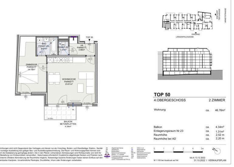 Wohnungsbeschreibung Top 50 im 4. Liftstock mit 46,76 m2 Wohnfläche + Balkon: