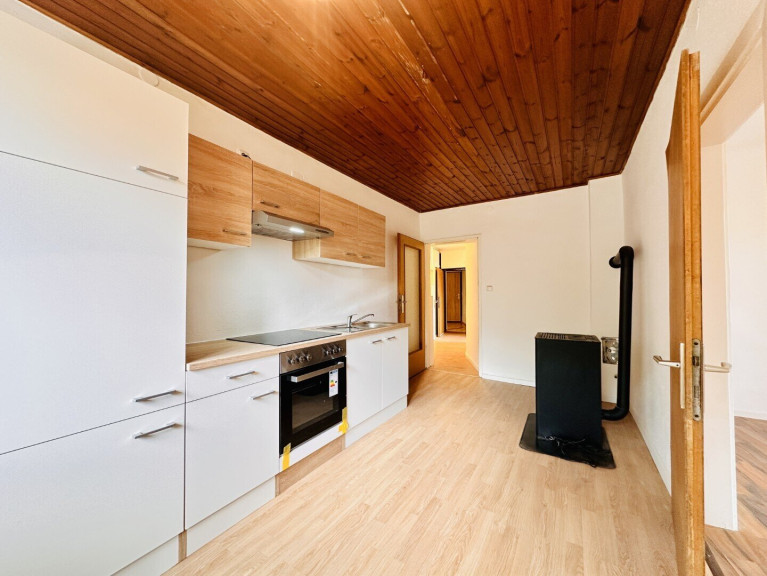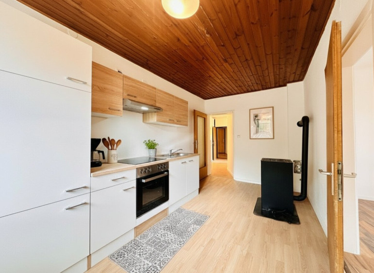 Fliesen, Laminatboden, Gas, Heizofen, Zentralheizung, Einbauküche