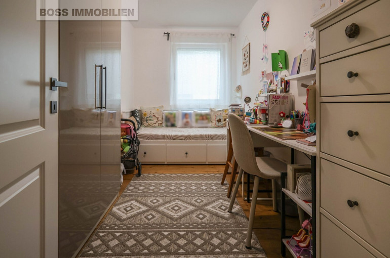 Das Herzstück der Wohnung ist der großzügige Wohnbereich mit direktem Zugang zur sonnigen Loggia – perfekt, um entspannte Stunden im Freien zu genießen. Große Fensterflächen durchfluten die Räume mit Tageslicht und schaffen ein helles, einladendes Wohnambiente.