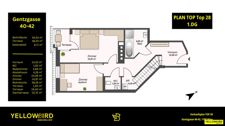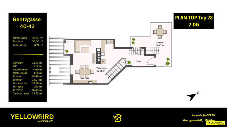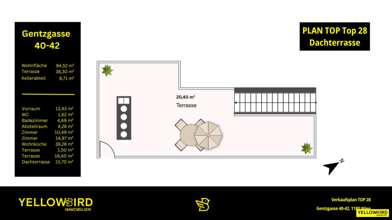 - Terrasse mit 38 m², Nord-Ausrichtung