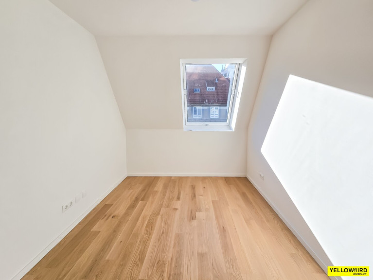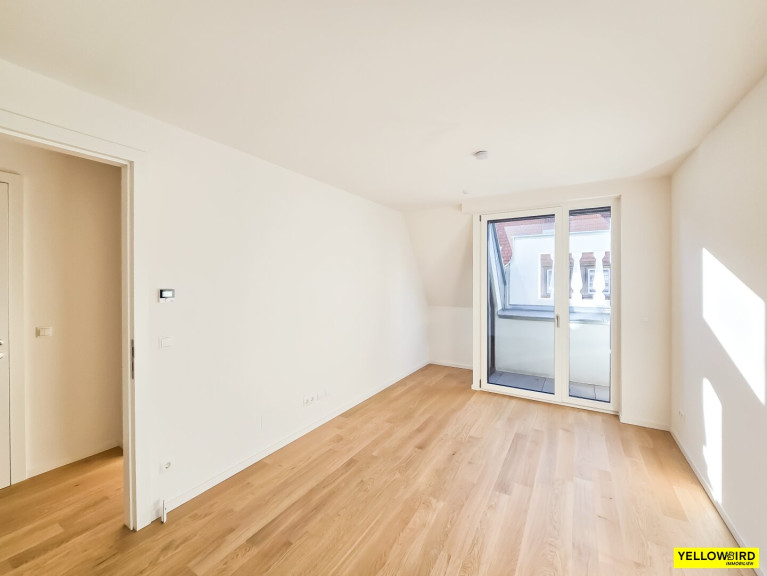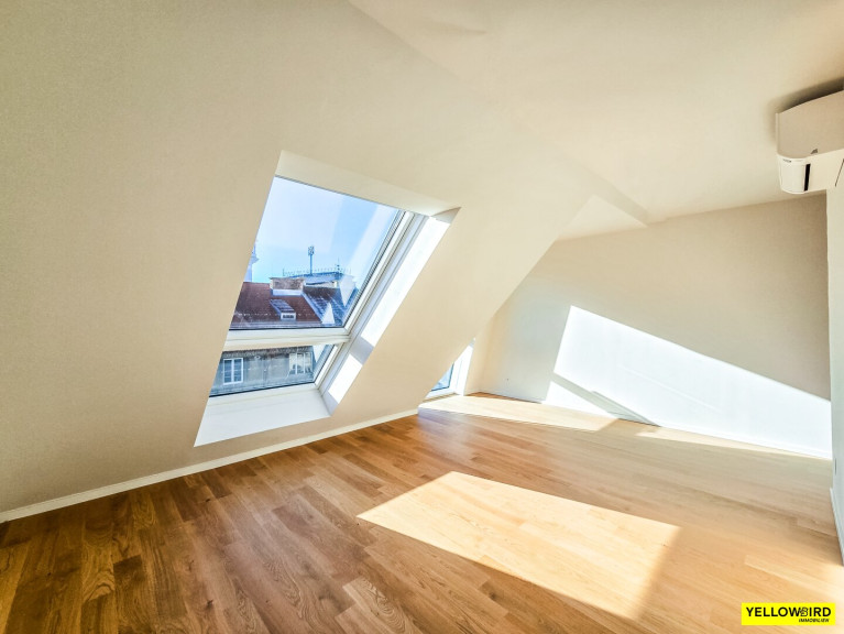 In bester Lage der Gentzgasse 40–42, nur wenige Schritte vom Kutschkermarkt entfernt, wartet eine außergewöhnliche Dachgeschosswohnung im Erstbezug.