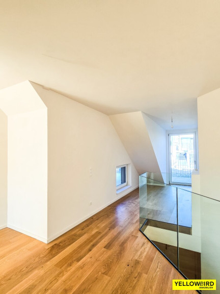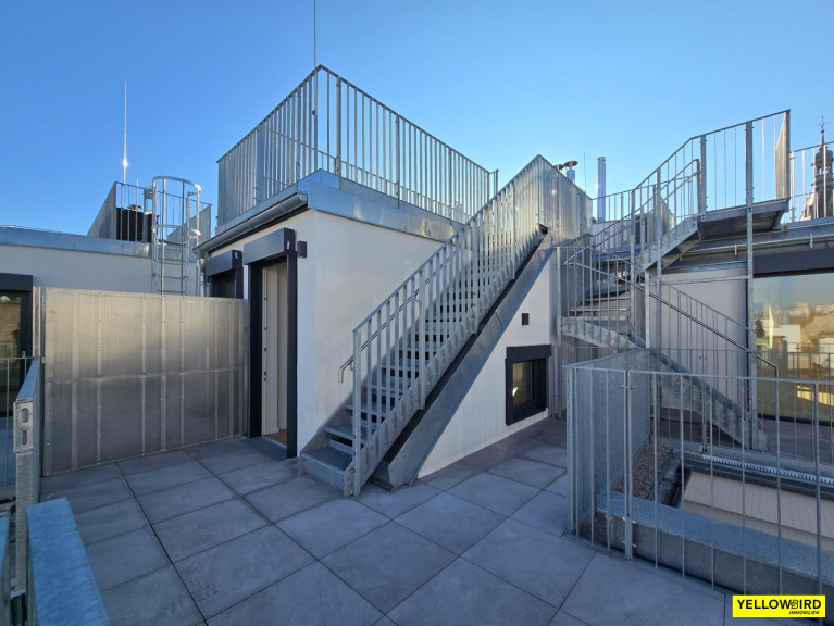 Die moderne Maisonette erstreckt sich über zwei Ebenen, inklusive einer großen Dachterrasse mit Blick über ganz Wien.