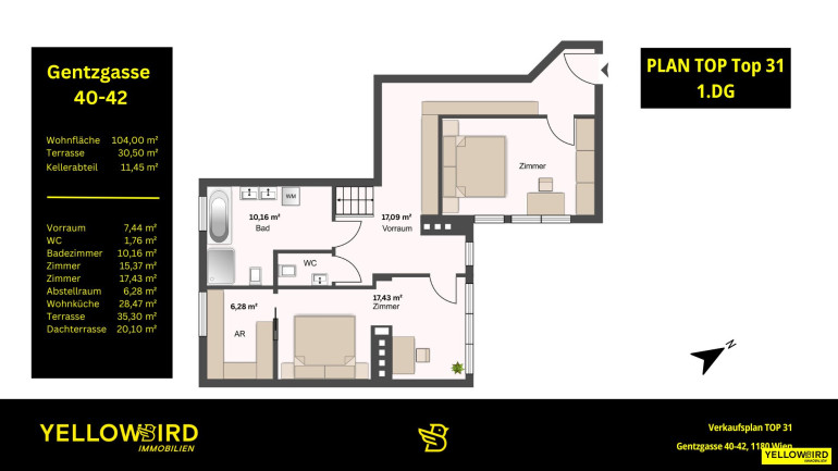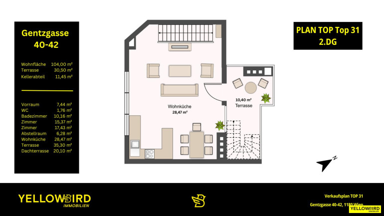 - Terrasse mit 31m², Nord-Ausrichtung