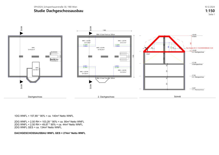 Es besteht die Möglichkeit den Rohdachboden auf ca. 274 m² Wohnraum auszubauen - Studie zum Dachbodenausbau liegt bereits vor.
