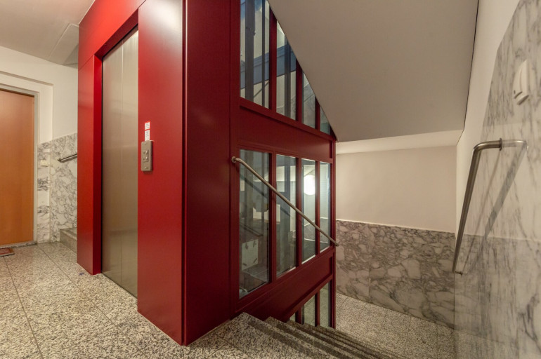 Parkett, Fliesen, Zentralheizung, Einbauküche, Personenaufzug, Badewanne, Dusche