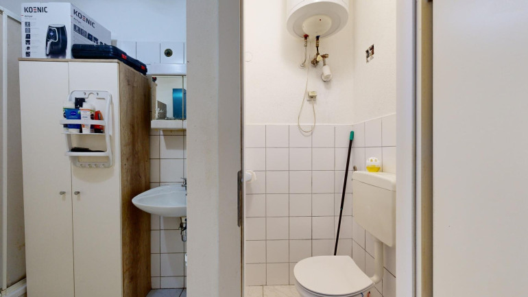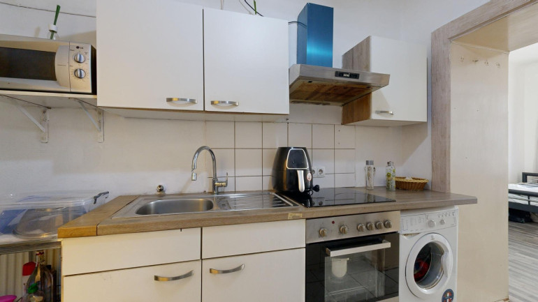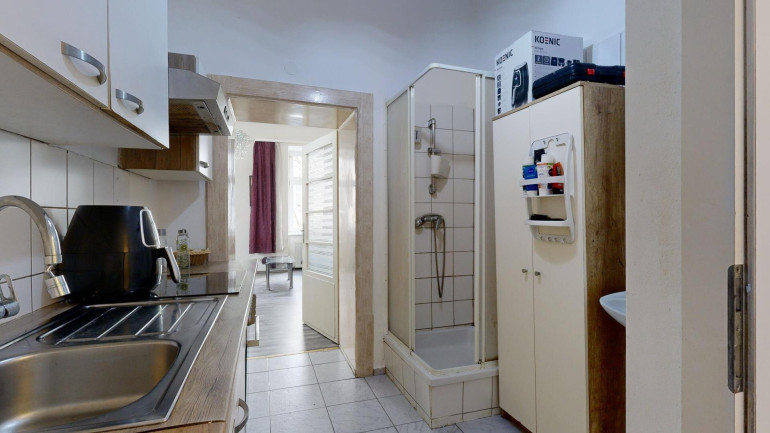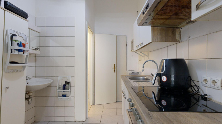 Die 1-Zimmer-Wohnung mit etwas über 28 m² besteht aus einem Vorraum mit Küchenzeile, einen separatem WC und einem Bad mit Dusche und einem gut 20 m² Wohnraum, der ebenfalls zur wenig befahrenen Ettenrichgasse gelegen ist.