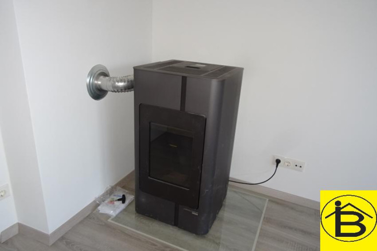 Die Wohnung wird mit einem Pelletsofen beheizt.