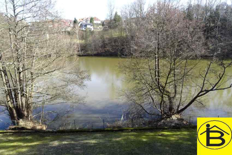 Von der Loggia aus kann man den Anblick des Hofwehrteiches bewundern.