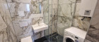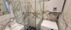 Badezimmer mit Fliesen in edler Marmoroptik, Dusche & WC