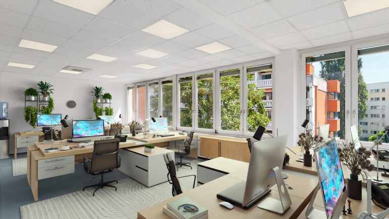 Die Raumaufteilung ist flexibel gestaltbar und eignet sich ideal für Unternehmen, die Wert auf Funktionalität, Erreichbarkeit und ein professionelles Umfeld legen.