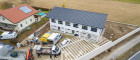 Ein Carport-Stellplatz mit angrenzendem Abstellraum für Fahrräder oder Motorräder bietet Ihnen praktischen Stauraum, während ein zusätzlicher Freiparkplatz weiteren Komfort garantiert. Die Holzriegelbauweise sorgt für eine nachhaltige und effiziente Bauqualität, die auch umweltfreundlich ist.