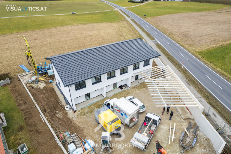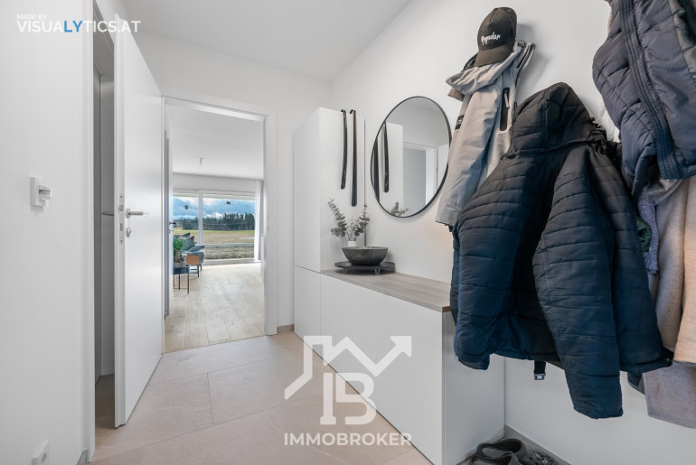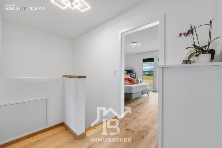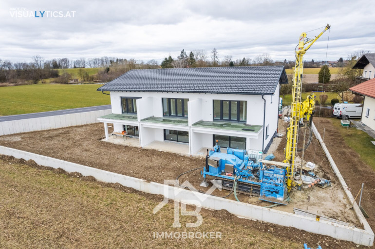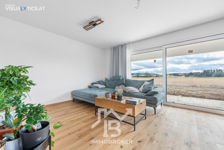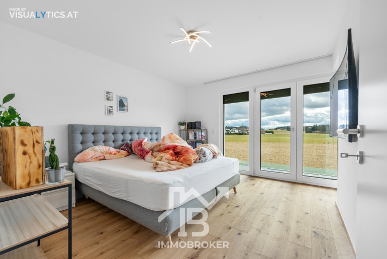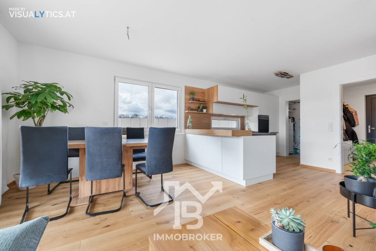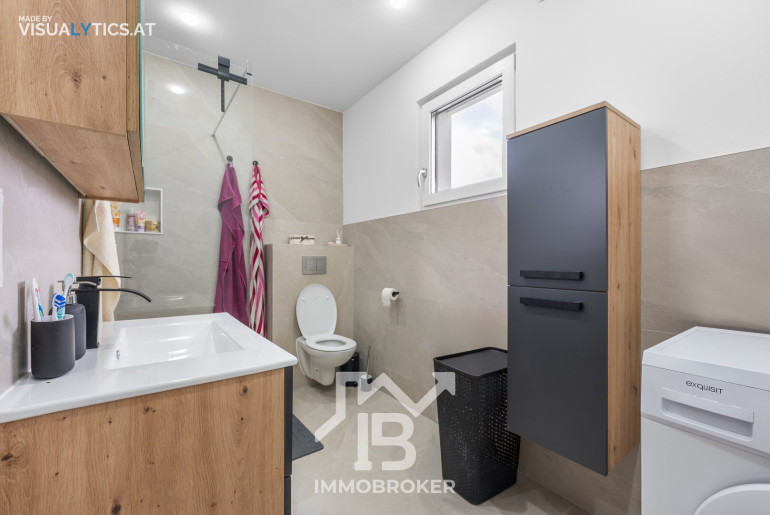 Besonderes Augenmerk wurde auf Wohnkomfort und Funktionalität gelegt: Alle Fenster sind mit Rollläden sowie integrierten Insektenschutzgittern ausgestattet, um Ihnen zu jeder Jahreszeit höchsten Komfort zu bieten. Die 3-fach verglasten Fenster gewährleisten optimale Energieeffizienz und ein angenehmes Wohnklima.