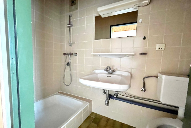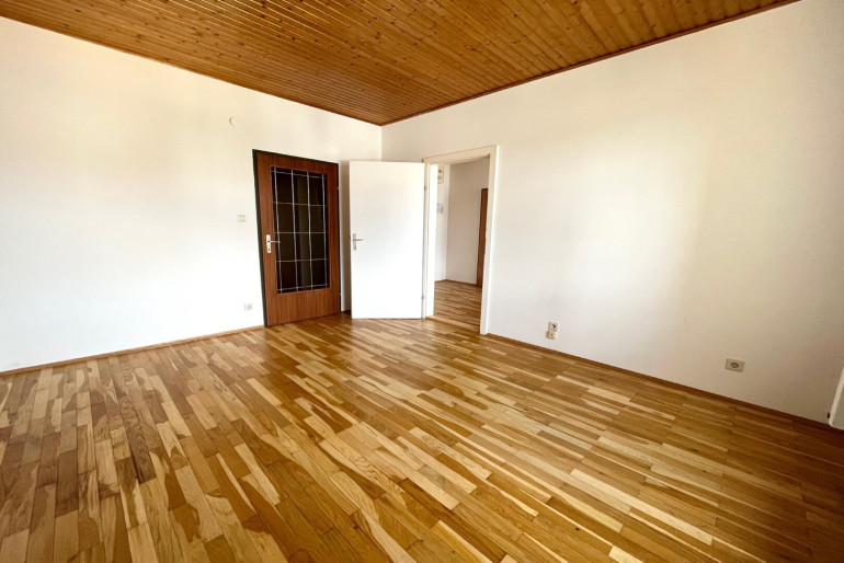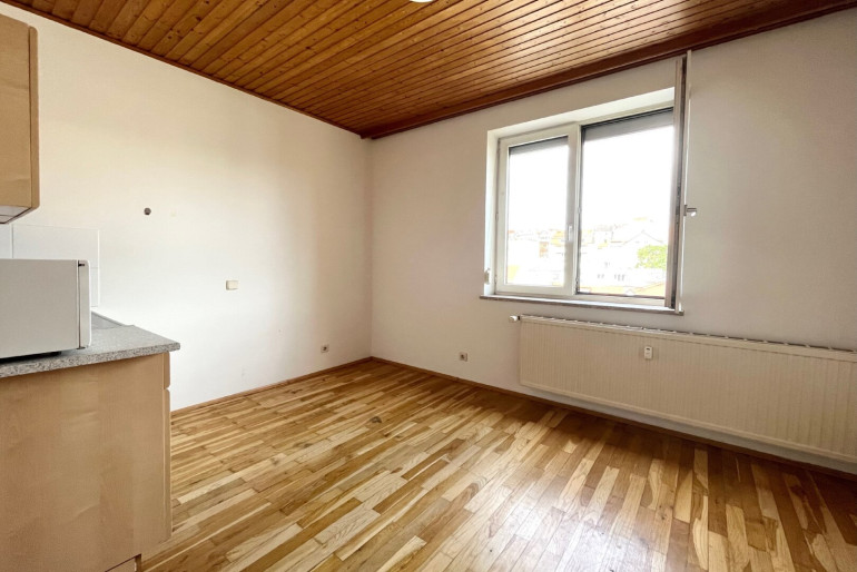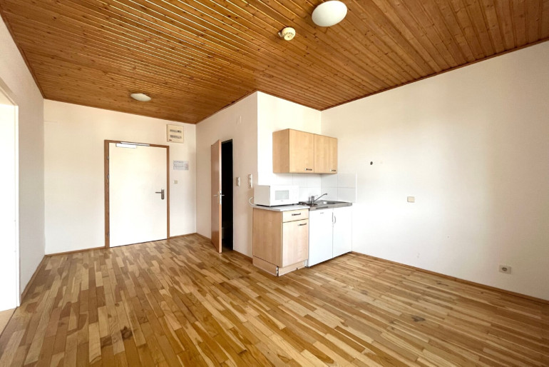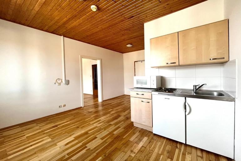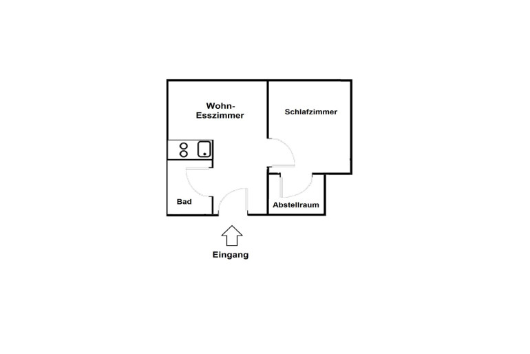Aufgeteilt ist die Wohnung in einen Wohnraum mit Essplatz und Küchenzeile, ein Schlafzimmer mit Abstellraum und ein Badezimmer mit WC.