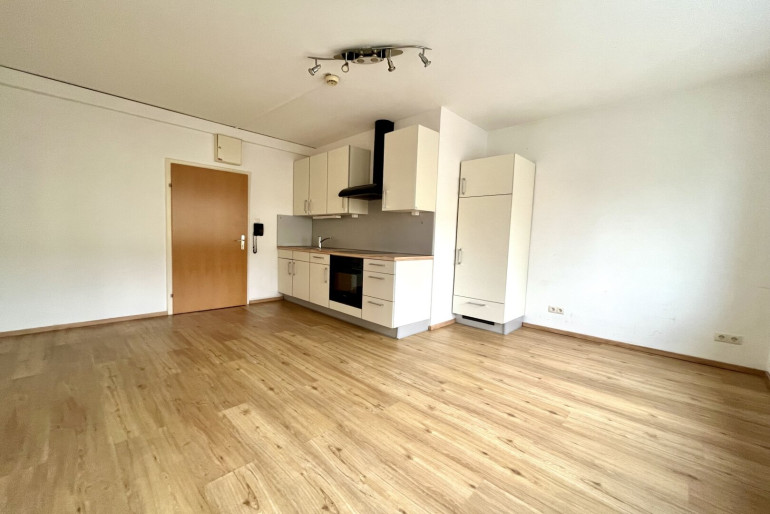 Aufgeteilt ist die Wohnung in einen geräumigen Wohnraum inkl. Küchenzeile mit XL-Kühlschrank, ein Schlafzimmer mit einer Schranknische und einem Badezimmer mit WC.