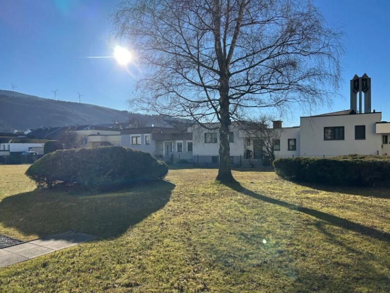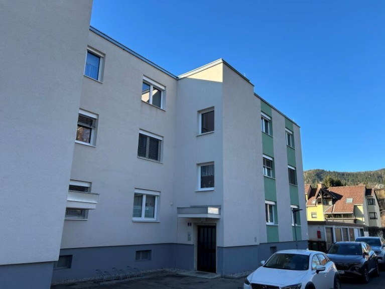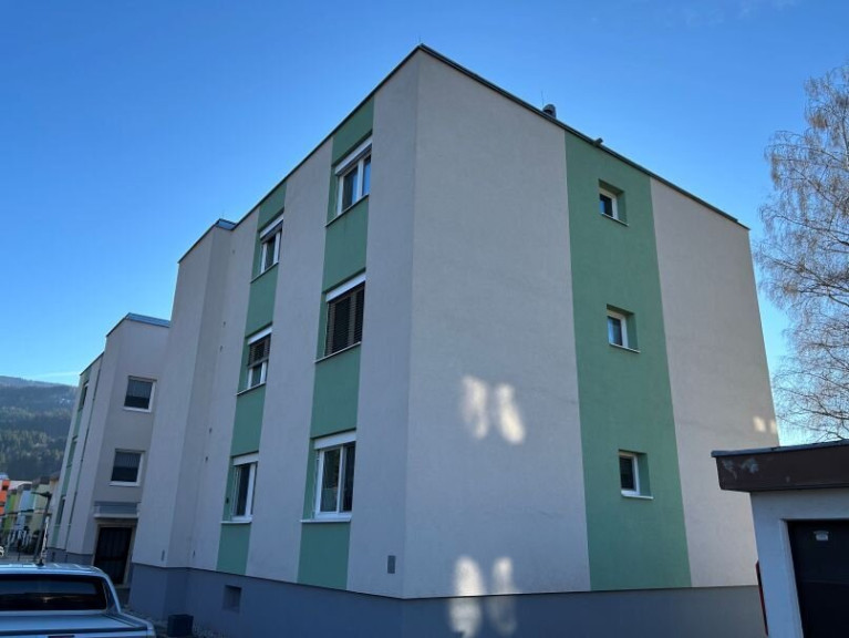 Die zum Verkauf stehende Wohnung findet sich im 2. Obergeschoß des Hauses "Klöpferweg 2" in Mitterdorf, Gemeinde St. Barbara im Mürztal und ist von Ost nach West ausgerichtet.