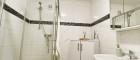 - modernes Bad mit Dusche, Waschbecken und WC aus dem Jahr 2017