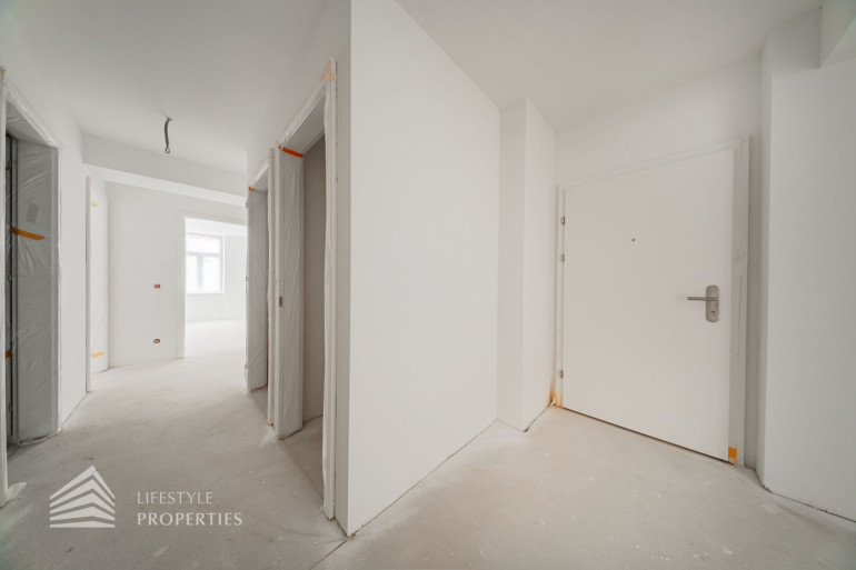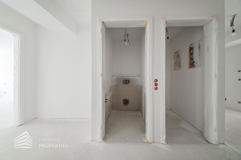 Sie betreten die Wohnung und befinden sich im Vorraum. Links gelangen Sie in eine großzügige Wohnküche mit Anschlüssen für eine offene Küche von hier haben Sie Zugang zum schönen Balkon. Gleich neben der Wohnküche befindet sich eines der Zimmer. Beim Eingang rechts gelangen Sie zu den zwei anderen Schlafzimmern. Der Abstellraum mit Waschmaschinenanschluss und das Badezimmer welches mit einer Badewanne, einer Dusche, einem Doppelwaschbecken und einem WC ausgestattet ist, sowie ein separates WC befinden sich im Vorraum.