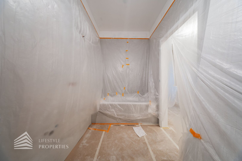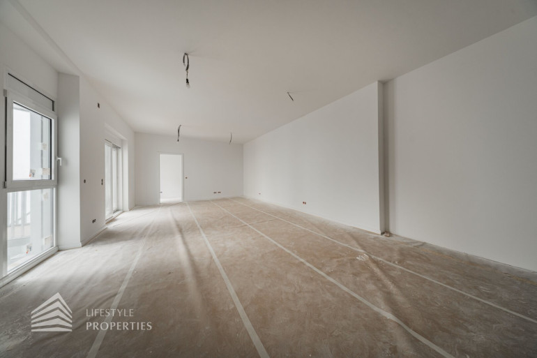 Sie betreten die Wohnung und befinden sich im Vorraum. Links gelangen Sie in eine großzügige Wohnküche mit Anschlüssen für eine offene Küche von hier haben Sie Zugang zu der schönen Terrasse. Gleich neben der Wohnküche befindet sich eines der Zimmer. Beim Eingang rechts gelangen Sie zu den zwei anderen Schlafzimmern. Der Abstellraum mit Waschmaschinenanschluss und das Badezimmer welches mit einer Badewanne, einer Dusche, einem Doppelwaschbecken und einem WC ausgestattet ist, sowie ein separates WC befinden sich im Vorraum.
