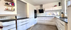 Im Erdgeschoss finden sie einen großen Wohn-Essbereich mit 40 m², verbunden mit der 11 m² großen offenen Küche vor. Die hochwertige Markenküche ist mit Siemens-Geräten ausgestattet (Induktionsherd, Dampfgarer uvm). Im EG ist auch ein WC mit Handwaschbecken und in der Diele ausreichend Stauraum vorhanden.