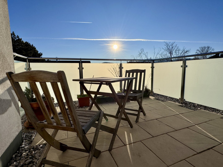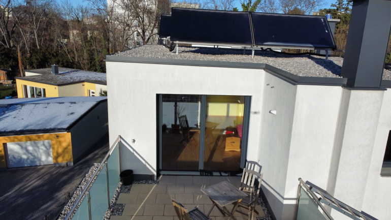 Das voll unterkellerte Haus bietet Ihnen und Ihrer Familie nicht nur eine große Wohnfläche von 163 m² plus 63 m² Keller, sondern auch einen gepflegten Garten mit Terrasse und eine Dachterrasse mit Anningerblick nach Südwesten.