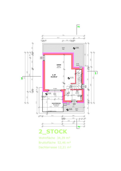 Das "Studio" im zweiten OG bietet viele Nutzungsmöglichkeiten. Ein schön belichteter Home-Officebereich ist genauso möglich wie hier den Master-Bedroom unterzubringen. Nebenan gibt es ein weiteres Badezimmer (Dusche und WC).