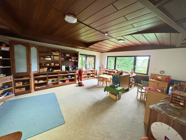 Derzeit wird die Villa an einen Kindergarten vermietet. Aufgrund der kleinen Veränderungen des Inneren, finden Sie beide Varianten der Fotos im Expose.
