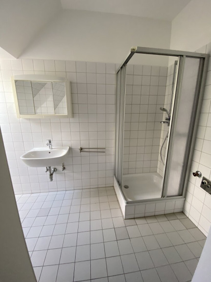 • Badezimmer mit Dusche, WC & Fenster