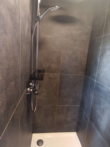 1 Badezimmer mit begehbarer Dusche und Waschbecken