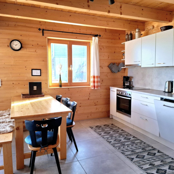 - Gemütliche Wohnküche mit Holzofen und Zugang zur Sonnenterrasse