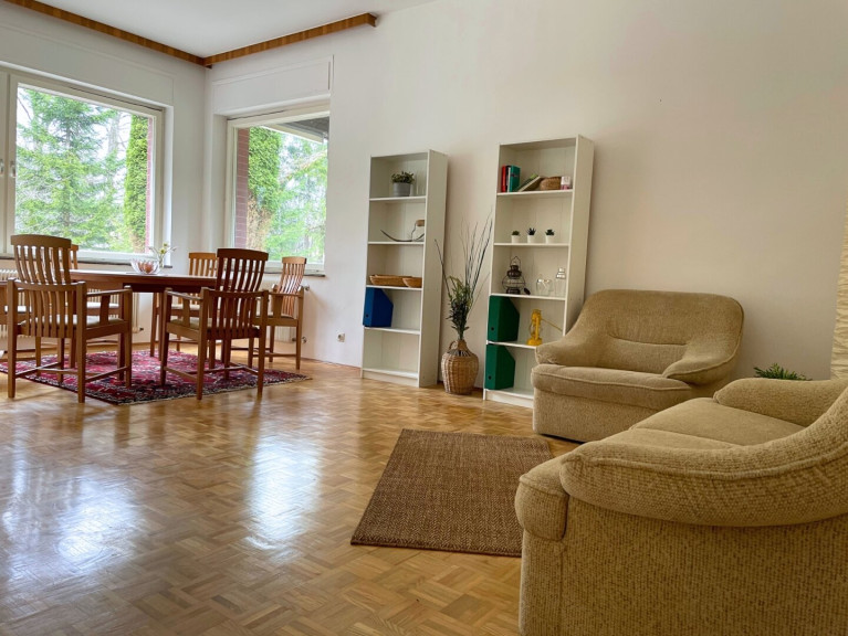 Parkett, Fliesen, Laminatboden, Öl, Zentralheizung, Einbauküche, Südbalkon, Bad mit Fenster, Dusche, Parkplatz, Tiefgarage, Carport, Garage, Swimmingpool