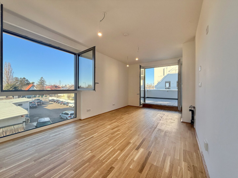Die ca. 43,64 m² Wohnung bietet einen perfekte Raumaufteilung für Singles oder junge Pärchen. Die ca. 13,30 m² große Terrasse ist von der Wohnküche und vom Schlafzimmer direkt zugänglich. Alle Zimmer sind mit großflächigen, bodentiefen Fenstern ausgestattet und bieten ein freundlich-helles Wohnambiente.