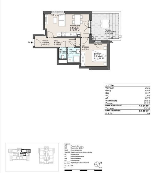 Top 09 | 2 Zimmer | ca. 43,64m² + ca. 13,30 m² Terrasse