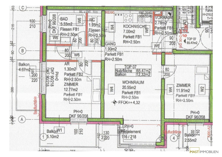Nach Eintritt in die Wohnung gelangen Sie durch den Vorraum in einen großzügigen Wohn- & Speisebereich, veredelt mit einer hochwertigen Küche inkl. Geräte. Die zwei Schlafzimmer verfügen über eine Fläche von rund 12 m² und 13 m² und bieten jeweils einen eigenen Balkon. Das größere Schlafzimmer hat sogar noch einen zweiten Balkon! Das Bad wurde mit einer Dusche und Waschbecken ausgestattet. Das WC mit Waschbecken ist natürlich vom Badezimmer getrennt begehbar. Zusätzlich wurde diese Wohnung mit einem Abstellraum ausgestattet. Ein Kellerabteil ist im Mietpreis ebenfalls inkludiert. Ein Stellplatz in der Garage kann optional angemietet werden.