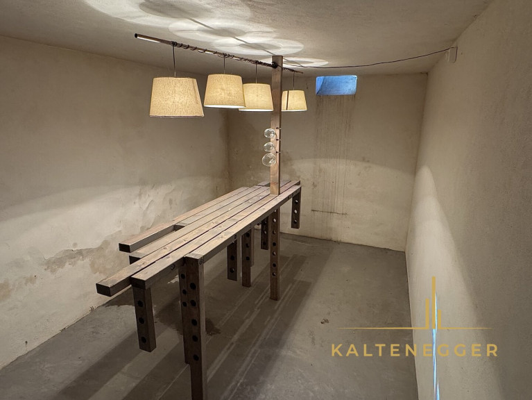 Weitere Highlights sind der unausgebaute Dachstuhl, der sowohl als gemütlicher Rückzugsraum als auch als großzügiger Abstellbereich genutzt werden kann, sowie das Kellergeschoss mit hauseigenem Weinkeller und Technikraum. Ein Schuppen für Gartengeräte oder Lagerzwecke, ein Carport sowie eine große Einfahrt mit Platz für mehrere Fahrzeuge runden das Angebot ab.