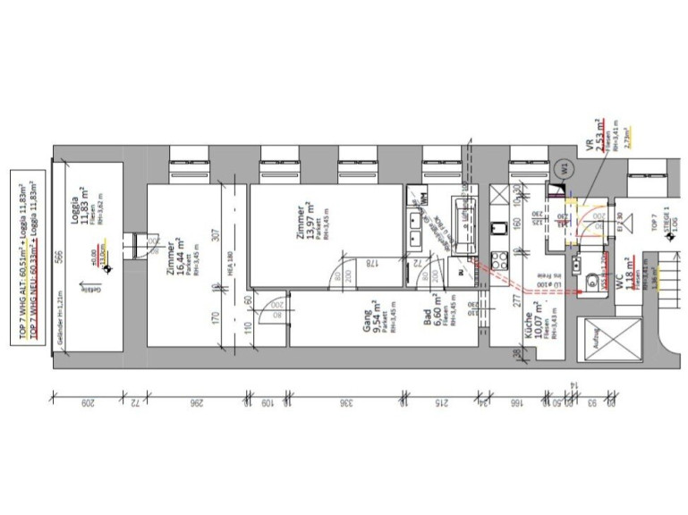 + Flur/Gang mit schöner Küchenzeile erschließt zentral alle Räume