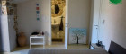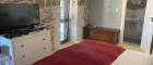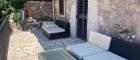 Die Innentreppe führt in die obere Etage, wo sich zwei Schlafzimmer (je 2 Doppelbetten) befinden, jedes mit eigenem Bad mit Dusche und WC sowie ein Zimmer mit Ausgang auf eine mit dem Garten verbundene Terrasse. Handtücher und Bettwäsche sind vorhanden.