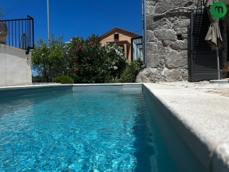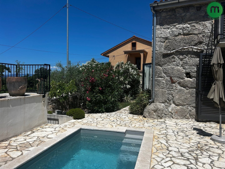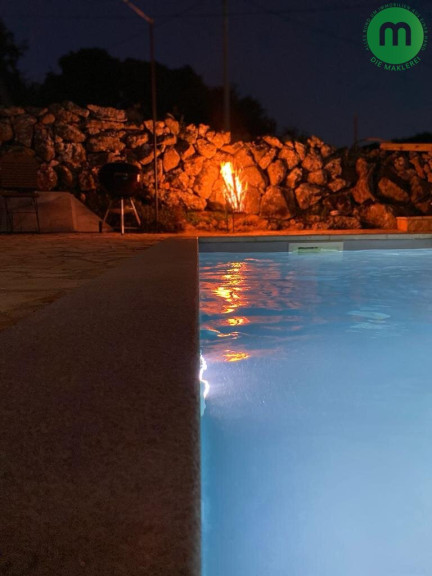 Der Außenbereich verfügt über eine großzügig terrassierte Fläche mit einem Pool, Außendusche (Solar) und weitere Terrassen mit Blick auf das Meer! Das Haus wurde 2013 komplett und sehr gut restauriert und renoviert, zeitlos möbliert und ausgestattet. Es befindet sich in ländlicher Umgebung in einem ruhigen Dorf, ca. 4 km vom Meer entfernt. Ideal für den Tourismus! Das Haus verfüg außerdem über ein Lager sowie einen Maschinenraum für das Schwimmbad und zwei Parkplätze.