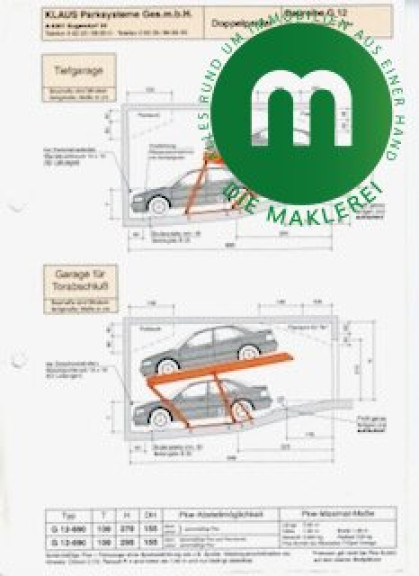 Die genaue Beschreibung (Größen- und Höhenangaben) des Parksystems der Firma Klaus wird in den Exposé-Unterlagen versendet.