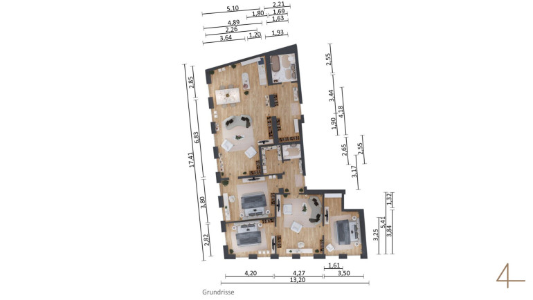 The great size results from combining two apartments, plus you have two entrances and could also separate the areas into living and sleeping areas (guest area and private area). The light-flooded rooms and the spacious layout make this apartment the ideal choice for a large family, students or as an apartment with a home office.