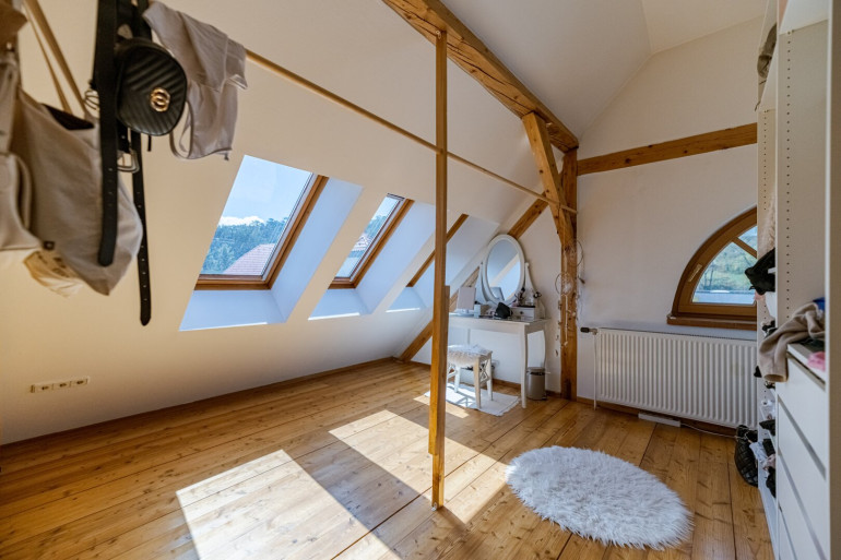 Ein nicht ausgebauter Dachboden bietet zusätzliches Potenzial zur Erweiterung.
