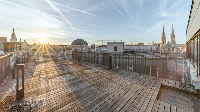 - Weitere Terrassen mit Ausblick auf die Hauptuniversität Wien, die Votivkirche sowie den Kahlenberg