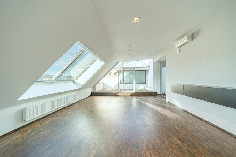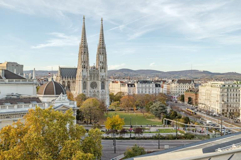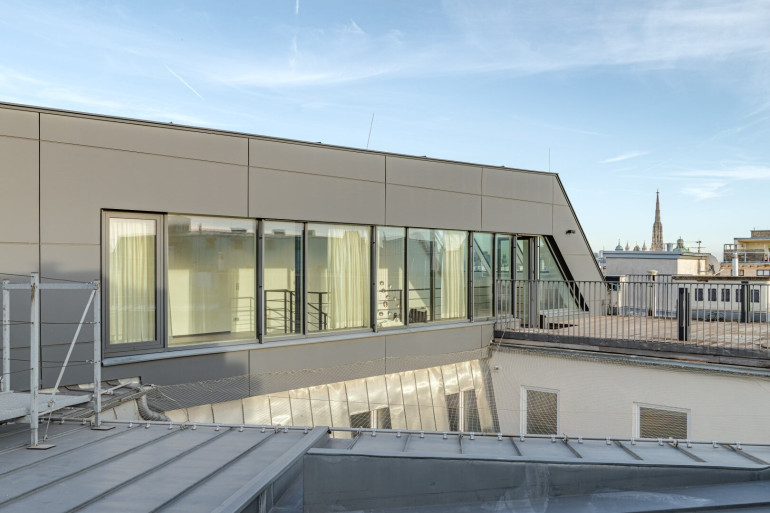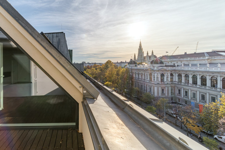 - Großzügige Dachterrasse mit ca. 66 m² und beeindruckendem Blick auf das Wiener Rathaus