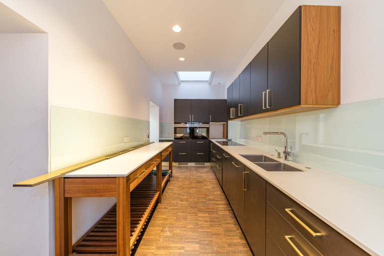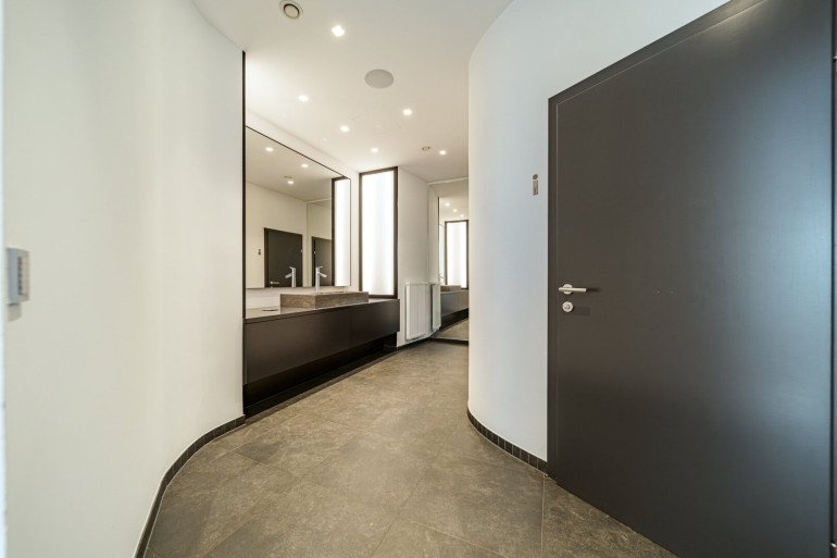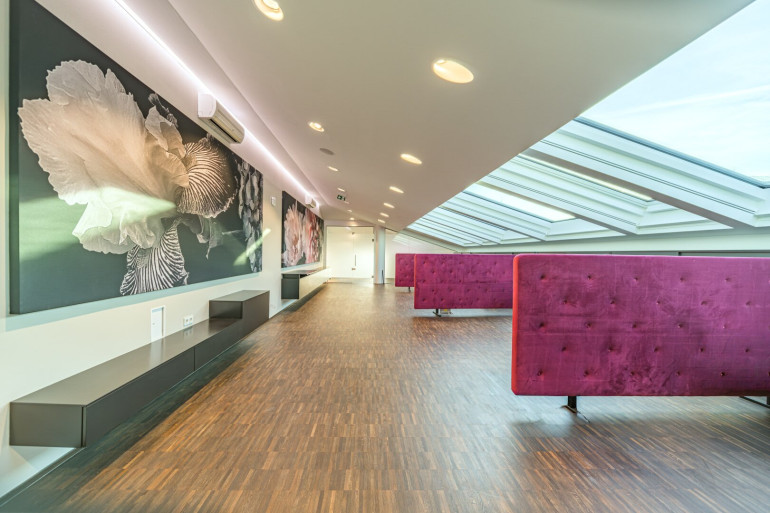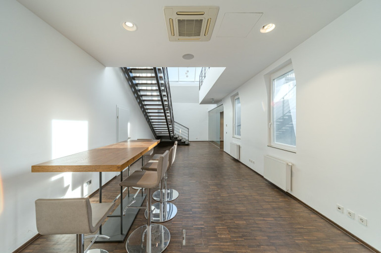 Die hochwertigen Oberflächen, die Kombination aus historischem Altbaucharme und modernen Designelementen sowie die lichtdurchfluteten Räume schaffen ein exklusives Arbeitsumfeld.
