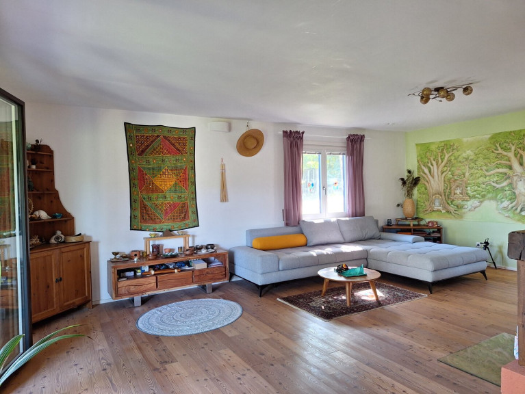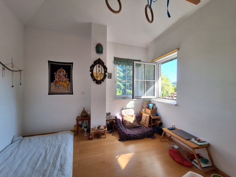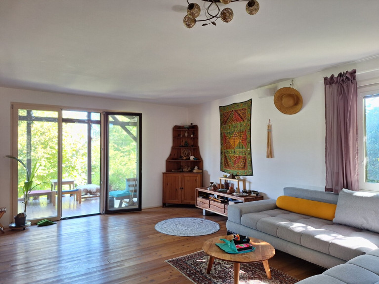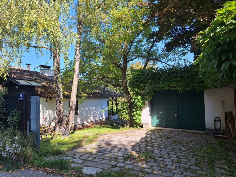 Dieses Einfamilienhaus besticht durch seine offene und behagliche Architektur und liegt in einer Sackgasse des sehr beliebten Ortsteils Hinterleiten. Die Liegenschaft umfasst eine Grundstücksfläche von 1.810 m² und ein Einfamilienhaus mit ca. 128 m² Wohnnutzfläche. Das Haus verfügt über ein Wohn- und Esszimmer, eine Terrasse, ein Schlafzimmer, ein Turmzimmer, eine Küche, zwei Bäder, WC, Waschküche, Sauna und zwei Abstellräume. Im Bereich der Grundstückseinfahrt befinden sich eine unterkellerte Garage sowie zwei überdachte Kfz - Stellplätze. Das Holzriegelhaus wurde schrittweise errichtet: 1976 entstand das Haupthaus, 1995 erfolgte die Erweiterung um die Veranda sowie Errichtung der Garage und des Carports und 2001 wurde der Verbindungstrakt (Turm) mit zwei Räumen zum Nebengebäude errichtet, in dem sich Waschküche, Sauna und zwei Abstellräume befinden. Das Haus ist mit Parkettböden bzw. Fliesen ausgestattet und verfügt über zwei- bis dreifach verglaste Fenster und Außentüren. Die Warmwasseraufbereitung erfolgt über zwei Elektrodurchlauferhitzer, die Heizung über eine elektrische Wandflächenheizung und zwei Kamine.