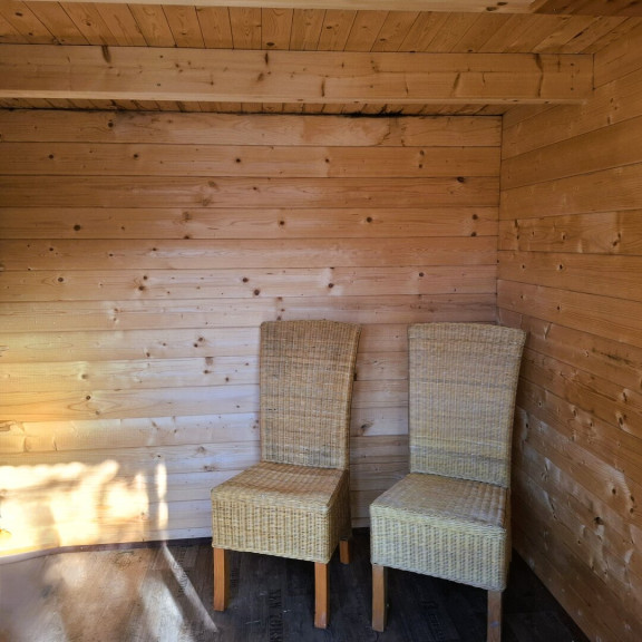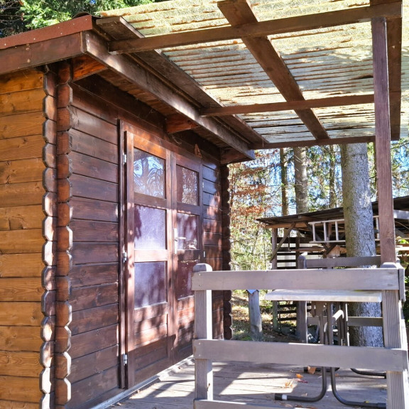 Die kleine Gartenhütte mit Terrasse bietet einen gemütlichen Platz zum Zurückziehen. Umgeben von Wald und Wiese genießen Sie eine wundervolle Aussicht und können Ihre Seele baumeln lassen.